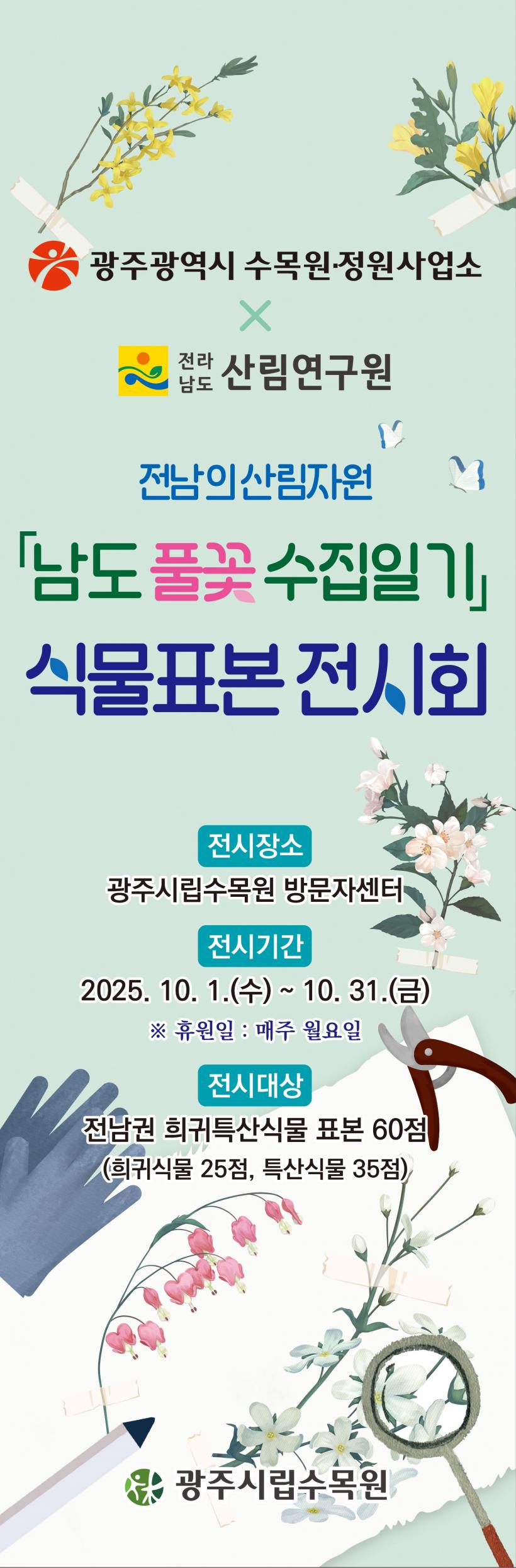 À̹ø Àü½Ã´Â Àü¶ó³²µµ»ê¸²¿¬±¸¿ø°úÀÇ Çù·ÂÀ¸·Î ÁøÇàÇϸç, ³ªÁÖ ºÒȸ»ç, ´ã¾ç °¡¸¶°ñ, À强 Ãà·É»ê, ¿Ïµµ »ó¿Õ»ê, ±¤¾ç ¹é¿î»ê, º¸¼º Àϸ²»ê µî Àü³² 6°³ Áö¿ª¿¡¼ Ž»ç¡¤¼öÁýÇÑ ÀÚ»ý½Ä¹° Ç¥º»À» ¼±º¸ÀδÙ. ±¸»ó³ª¹«¡¤¹é¾ç²É µî Èñ±Í½Ä¹° 25Á¾°ú ÇѶóÅõ±¸²É¡¤Çҹ̹иÁ µî Ư»ê½Ä¹° 35Á¾ µî ÃÑ 60Á¾ÀÇ ´Ù¾çÇÑ ½Ä¹°Ç¥º»À» °ü¶÷ÇÒ ¼ö ÀÖ´Ù.