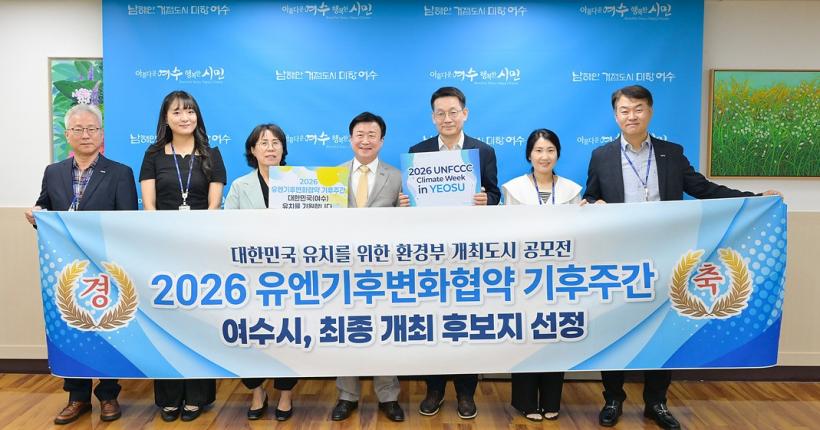[°ø°£´º½º = ¾ÈÀ翵±âÀÚ] ¿©¼ö½Ã(½ÃÀå Á¤±â¸í)´Â ¡®2026³â À¯¿£±âÈĺ¯ÈÇù¾à(UNFCCC) ±âÈÄÁÖ°£(Climate Week)¡¯ ´ëÇѹα¹ °³ÃÖµµ½Ã °ø¸ð¿¡¼ ÃÖÁ¾ Èĺ¸Áö·Î ¼±Á¤µÆ´Ù°í ¹àÇû´Ù.