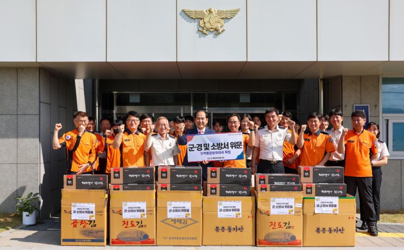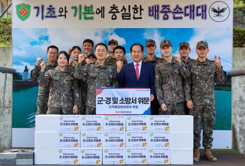 Áøµµ±º ÅëÇÕ¹æÀ§ÇùÀÇȸ´Â Áö¿ª»çȸÀÇ ¾ÈÀü°ú ±¹°¡ ¾Èº¸¸¦ À§ÇØ ÇöÀå¿¡¼ ¶¡ È긮´Â ±ºÀΰú °æÂû, ¼Ò¹æ´ë¿øµé¿¡°Ô °¨»çÀÇ ¸¶À½À» ÀüÇϱâ À§ÇØ ¸Å³â ¼³°ú Ãß¼®¿¡ À§¹® Ȱµ¿À» À̾î¿À°í ÀÖ°í, À̹ø À§¹®¿¡´Â Çѵ·°ú Áøµµ Ư»êǰ ¼¼Æ®¸¦ Àü´ÞÇÏ¸ç µû¶æÇÑ ¸¶À½À» ³ª´³´Ù.