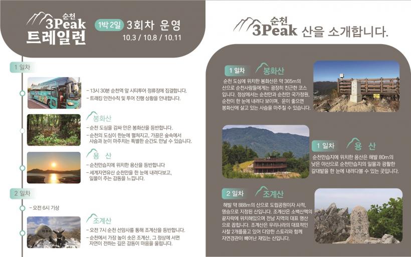[°ø°£´º½º = ±è¿ëÁø±âÀÚ] ¼øÃµ½Ã(½ÃÀå ³ë°ü±Ô)´Â 10¿ùºÎÅÍ 11¿ù±îÁö ÀÚ¿¬ÀÇ °¡Ä¡¿Í ¾Æ¸§´Ù¿òÀ» ¿ÂÀüÈ÷ üÇèÇÒ ¼ö ÀÖ´Â ¡®1¹Ú 2ÀÏ Ã¼·ùÇü¡¯ ¿©Çà»óǰÀ» ¿î¿µÇÑ´Ù°í ¹àÇû´Ù.