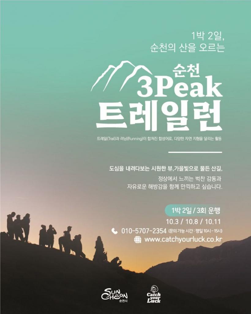 ÁÖ¿ä ÀÏÁ¤Àº ¡ã¼øÃµ¸¸½ÀÁö¿¡¼ ÈæµÎ·ç¹Ì ±º¹« °üÂû ¡ã¿ë»ê Àü¸Á´ë Àϸô °¨»ó ¡ãÀå»êµÏ±æ »õº® ŽÁ¶ µîÀ¸·Î ¸¶·ÃµÆÀ¸¸ç 10¿ù 25~26ÀÏ, 10¿ù 31~11¿ù 1ÀÏ, 11¿ù 1~2ÀÏ, 11¿ù 8~9ÀÏ·Î ÃÑ 4ȸ¿¡ °ÉÃÄ ¿î¿µµÈ´Ù.