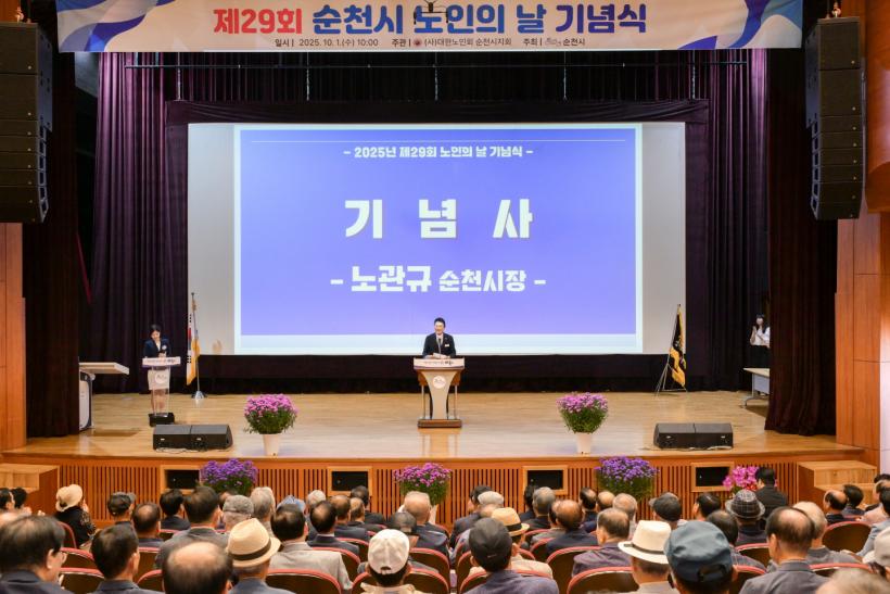 [°ø°£´º½º = ±è¿ëÁø±âÀÚ] ¼øÃµ½Ã(½ÃÀå ³ë°ü±Ô)°¡ ÁÖÃÖÇϰí (»ç)´ëÇѳëÀÎȸ ¼øÃµ½ÃÁöȸ(ȸÀå ±è¿µ¼ö)°¡ ÁÖ°üÇÏ´Â Á¦29ȸ ³ëÀÎÀÇ ³¯ ±â³ä½ÄÀ» Áö³ 1ÀÏ ¹®È°Ç°¼¾ÅÍ ´Ù¸ñÀûȦ¿¡¼ ¼ºÈ²¸®¿¡ °³ÃÖÇß´Ù°í ¹àÇû´Ù.