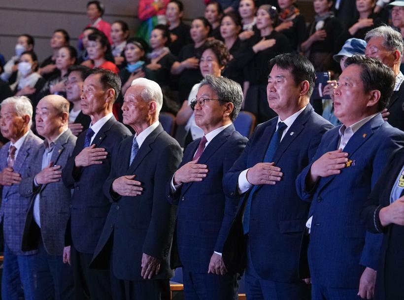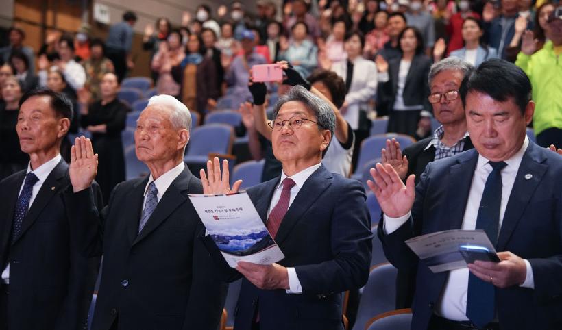 °±âÁ¤ ±¤ÁÖ±¤¿ª½ÃÀåÀÌ 3ÀÏ ¿ÀÀü ³²±¸ ºû°íÀ»½Ã¹Î¹®È°ü¿¡¼ ¿¸° '´Ü±â 4358³â 2025³â °³ÃµÀý °æÃà½Ä'¿¡ Âü¼®ÇØ Çà»ç¸¦ ¸¶Ä£ µÚ ±¹Á¶¼þ¸ðȸ ȸ¿øµé°ú ±â³äÃÔ¿µÀ» Çϰí ÀÖ´Ù.