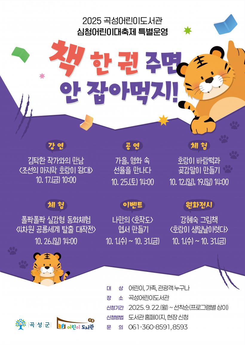 ¸ÕÀú, ¿À´Â 17ÀÏ¿¡´Â ±èŹȯ ÀÛ°¡¿ÍÀÇ ¸¸³²ÀÌ ÁøÇàµÈ´Ù. ÀÛ°¡ÀÇ ´ëÇ¥ÀÛ Áß ÇϳªÀÎ <¸¶Áö¸· È£¶ûÀÌ ¿Õ´ë>¸¦ ÇÔ²² ÀÐ°í »ýÅÂ¿Í ¿ª»ç¸¦ ÀÌÇØÇÏ´Â ½Ã°£À» °¡Áø´Ù. 10¿ù 25ÀÏ¿¡´Â <°¡À», ¿µÈ ¼Ó ¼±À²À» ¸¸³ª´Ù> °ø¿¬ÀÌ ÀÖ´Ù. Ä£±ÙÇÑ ¿µÈ¿Í ¾Ö´Ï¸ÞÀÌ¼Ç OST¸¦ Áß½ÉÀ¸·Î ÇÑ Å¬·¡½Ä ¾Ó»óºí ¿¬ÁÖ°¡ °¡Á·µé°ú °ü±¤°´ÀÇ ±Í¸¦ Áñ°Ì°Ô ÇÒ ¿¹Á¤ÀÌ´Ù.
