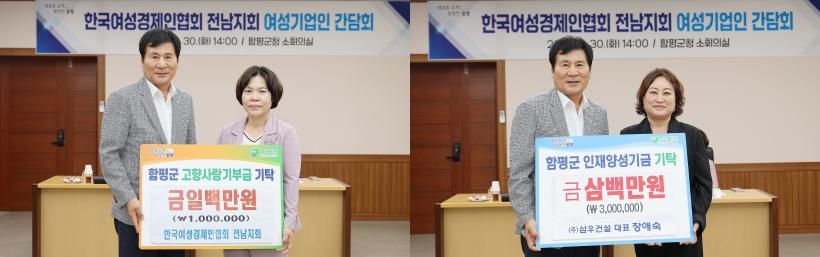 ƯÈ÷, Çѱ¹¿©¼º°æÁ¦ÀÎÇùȸ Àü³²Áöȸ¿¡¼ °íÇâ»ç¶û±âºÎ±Ý 100¸¸ ¿ø°ú ¢ß»ï¿ì°Ç¼³(´ëÇ¥ Àå¾Ö¼÷)ÀÌ ÀÎÀç¾ç¼º±â±Ý 300¸¸ ¿øÀ» ÇÔÆò±º¿¡ ±âŹÇÏ¸ç »ó»ý Çù·ÂÀÇ ÀÇÁö¸¦ ´õÇß´Ù.