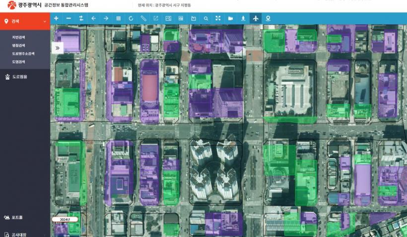 ¡®µµ·ÎÁ¡¿ë °ü¸®±â´É¡¯Àº Ç×°ø»çÁø°ú ·Îµåºä µî Ãֽаø°£Á¤º¸ ±â¼úÀ» Ȱ¿ë, ±¤ÁÖ Àü¿ªÀÇ µµ·ÎÁ¡¿ë ÇöȲÀ» ½Ã°¢ÈÇß´Ù. À̸¦ ÅëÇØ ´ã´ç °ø¹«¿øÀÌ ÇöÀå¿¡ Á÷Á¢ ³ª°¡Áö ¾Ê°íµµ ½Ç½Ã°£À¸·Î µµ·ÎÁ¡¿ë ÇöȲÀ» È®ÀÎÇÒ ¼ö ÀÖ°Ô µÆ´Ù.