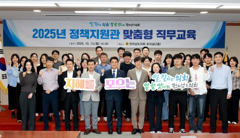 [°ø°£´º½º = ±è¼ö±Ù±âÀÚ] Àü¶ó³²µµÀÇȸ(ÀÇÀå ±èűÕ)´Â 10¿ù 13ÀÏ µµÀÇȸ ÃÊÀǽǿ¡¼ ¼Ò¼Ó Á¤Ã¥Áö¿ø°ü°ú Á÷¿øÀ» ´ë»óÀ¸·Î ¡®¸ÂÃãÇü Á÷¹«±³À°¡¯À» ½Ç½ÃÇß´Ù.