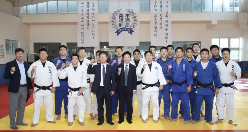 À̾î Àü±¹Ã¼Àü Áغñ¿¡ ¸ÅÁø ÁßÀÎ ¸ñÆ÷°íµîÇб³ À¯µµºÎ Çлý¼±¼öµéÀ» °Ý·ÁÇϰí, Çб³¿îµ¿ºÎ °ü°èÀÚµé°ú ÇÔ²² ´ëȸ Áغñ »óȲÀ» Á¡°ËÇß´Ù.