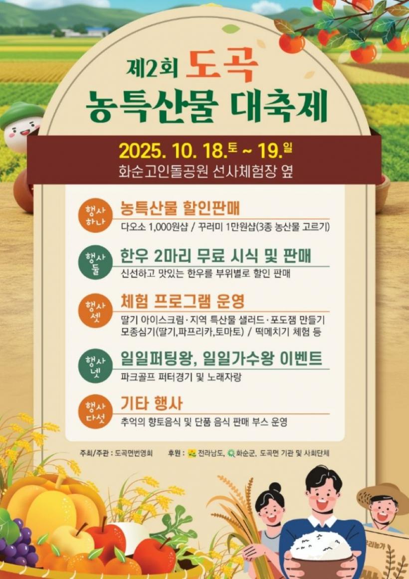 À̹ø ÃàÁ¦´Â 2025 ȼø °íÀε¹ °¡À»²É ÃàÁ¦¿Í ¿¬°èÇÑ µ¿¹Ý Çà»ç·Î ÀÛ³â Á¦1ȸ ÃàÁ¦ÀÇ ¼º°øÀûÀÎ °³ÃÖ¿¡ ÀÌ¾î ¿ÃÇØµµ µµ°î Áö¿ªÀÇ ¿ì¼öÇÑ ³óƯ»ê¹°À» ³Î¸® ¾Ë¸®°í, Áö¿ª°æÁ¦ Ȱ¼ºÈ¸¦ µµ¸ðÇϰíÀÚ ±âȹµÇ¾ú´Ù.