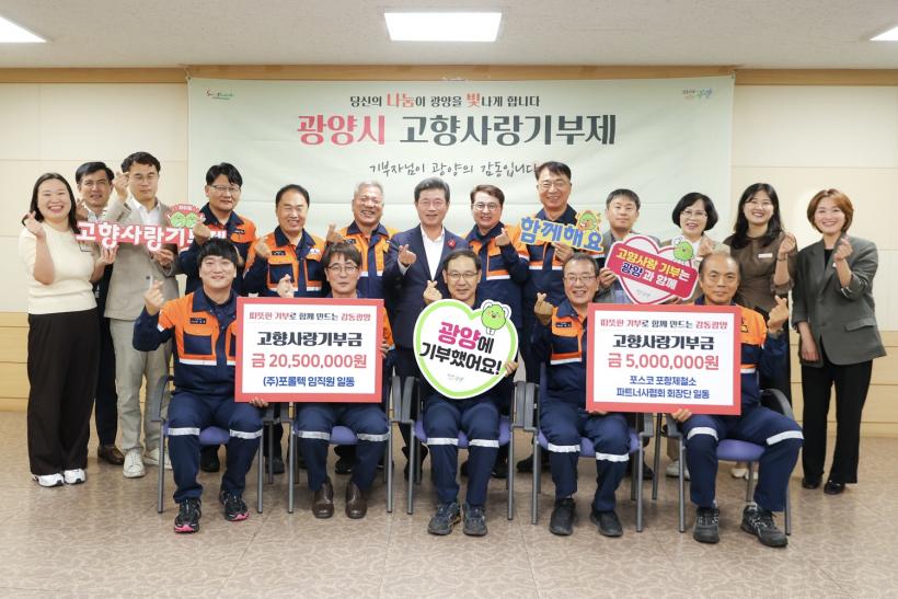 2025³â ±¤¾ç–Æ÷Ç×Á¦Ã¶¼Ò ÆÄÆ®³Ê»çÇùȸ °£ »óÈ£±âºÎ´Â À̹ø Àü´Þ½ÄÀ» ½ÃÀÛÀ¸·Î º»°ÝȵÅ, ¿À´Â 11¿ù¿¡´Â ±¤¾çÁ¦Ã¶¼Ò ÆÄÆ®³Ê»çÇùȸ ȸÀå´Ü(ȸÀå Á¤Çö¼ö)ÀÌ Æ÷Ç׽ÿ¡ °íÇâ»ç¶û ±âºÎ±ÝÀ» Àü´ÞÇÒ ¿¹Á¤ÀÌ´Ù.