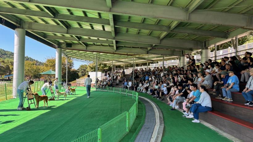[°ø°£´º½º = Àå¿ÁÁø±âÀÚ] Áøµµ±ºÀº Áö³ Ãß¼® Ȳ±Ý¿¬ÈÞ¸¦ ¸Â¾Æ ¾à 1¸¸ ¸íÀÌ Áøµµ°³Å׸¶ÆÄÅ©¸¦ ¹æ¹®ÇØ Áøµµ°³ °ø¿¬, ´Þ¸®±â, Àå¾Ö¹° ´Þ¸®±â(¾îÁú¸®Æ¼) µî µµ±×(Dog) ½ºÆ÷Ã÷¸¦ °ü¶÷Çϰí, Áøµµ°³ °¾ÆÁö üÇèÀå°ú ¹Ì´Ï µ¿¹°³óÀå(ÇнÀüÇèÀå)À» ´Ù³à°¬´Ù°í ¹àÇû´Ù.