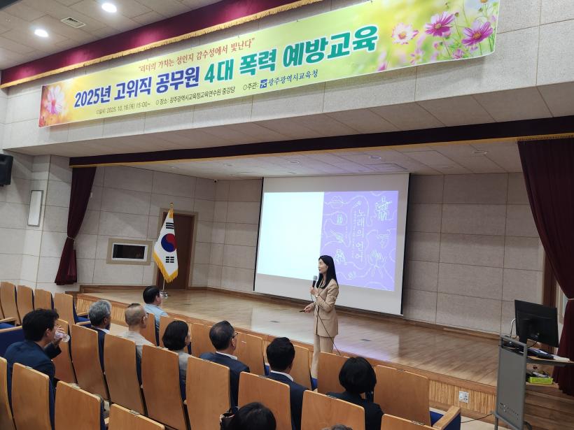 [°ø°£´º½º = ±è¼ö±Ù±âÀÚ] ±¤Áֽñ³À°Ã»(±³À°°¨ ÀÌÁ¤¼±)Àº 16ÀÏ ±³À°¿¬¼ö¿ø Áß°´ç¿¡¼ 5±Þ ÀÌ»ó °ø¹«¿øÀ» ´ë»óÀ¸·Î ¡®4´ë Æø·Â(¼ºÈñ·Õ¡¤¼º¸Å¸Å¡¤¼ºÆø·Â¡¤°¡Á¤Æø·Â) ¿¹¹æ±³À°¡¯À» ½Ç½ÃÇß´Ù.