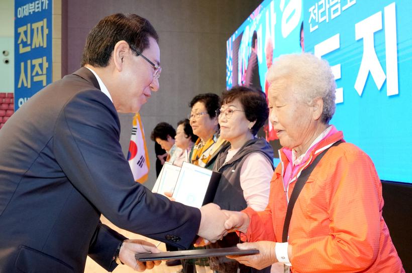°³È¸½Ä¿¡¼´Â ¡®Æò»ýÇнÀÀ¸·Î ¿¾î°¡´Â Àü³² ÀÎÀçÀ°¼ºÀÇ ±æ¡¯À̶ó´Â ¿µ»óÀ» ÅëÇØ Àü³²ÀÎÀçÀ°¼º Á¤Ã¥À» ¼Ò°³Çϰí, µµÁö»ç»ó¡¤µµÀÇÀå»ó¡¤±³À°°¨»ó µî Æò»ý±³À°°ú ¹®Çر³À° ºÐ¾ß¿¡¼ ¿ì¼öÇÑ ¼º°ú¸¦ °ÅµÐ ÃÑ 30¸í¿¡ ´ëÇÑ ½Ã»ó½ÄÀÌ ÁøÇàµÆ´Ù.