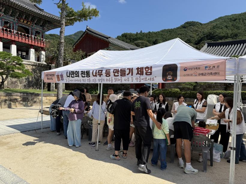 [°ø°£´º½º = Çѵ¿¼ø±âÀÚ] ±¸·Ê±º°¡Á·¼¾ÅÍ(¼¾ÅÍÀå ¹Ú¹Ì¿¬)´Â Áö³ 10¿ù 10ÀÏ(±Ý), 11ÀÏ(Åä), õ³â°íÂû Ⱦö»ç¿¡¼ ¡®³ª¸¸ÀÇ ÀüÅë ³ª¹«µî ¸¸µé±â¡¯ üÇè È«º¸»ç¾÷À» ¼º°øÀûÀ¸·Î ÁøÇàÇß´Ù°í ¹àÇû´Ù.