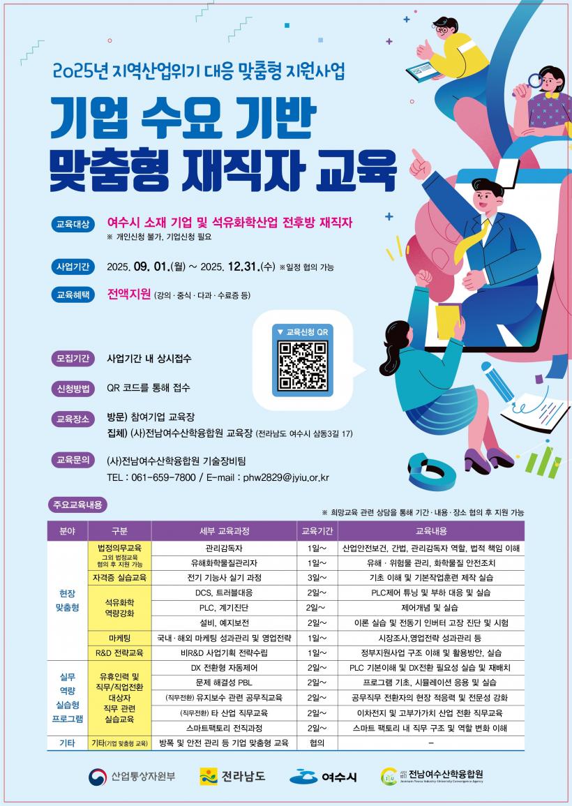 ÀÌ ¿Ü¿¡µµ ±â¾÷°ú ÇùÀÇÇØ ¸ÂÃãÇü ±³À° ¼³°è ¹× ¿î¿µÀÌ °¡´ÉÇÏ¸ç »ç¾÷ Âü¿©´Â 2025³â 12¿ù±îÁö »ó½Ã Á¢¼öÇÑ´Ù. ÀÚ¼¼ÇÑ »çÇ×Àº Àü³²¿©¼ö»êÇÐÀ¶ÇÕ¿ø(¢Ï061-659-7800)À¸·Î ¹®ÀÇÇÏ¸é µÈ´Ù.