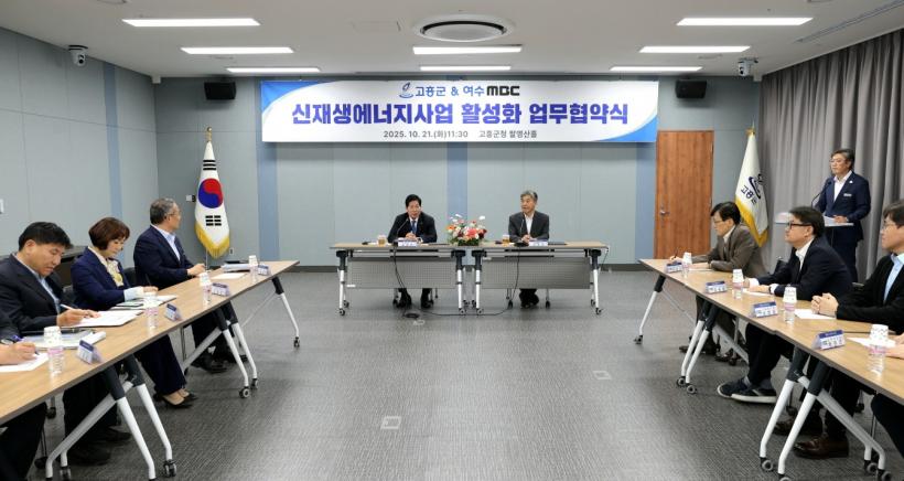 [°ø°£´º½º = ±è¿ëÁø±âÀÚ] °íÈﱺ(±º¼ö °ø¿µ¹Î)ÀÌ ¿©¼ö¹®È¹æ¼Û(»çÀå ÀÌÈ£ÀÎ)°ú Áö¿ªÀÇ ½ÅÀç»ý¿¡³ÊÁö Ȱ¼ºÈ¿Í ģȯ°æ ¿¡³ÊÁö »ê¾÷ À°¼ºÀ» À§ÇØ ¼ÕÀ» ¸ÂÀâ¾Ò´Ù.