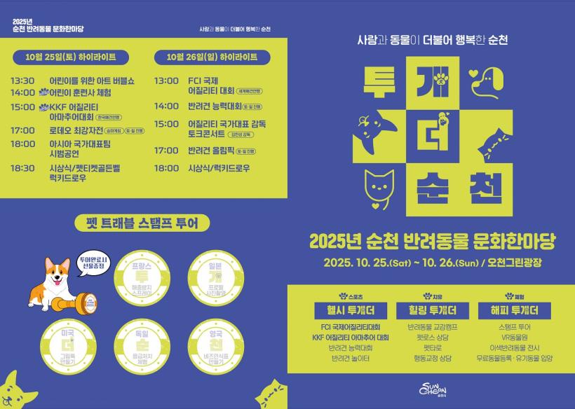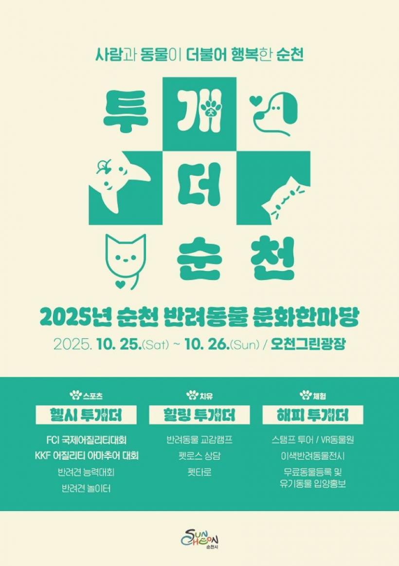 [°ø°£´º½º = ±è¿ëÁø±âÀÚ] ¼øÃµ½Ã(½ÃÀå ³ë°ü±Ô)´Â ¿À´Â 25ÀÏ(Åä), 26ÀÏ(ÀÏ) ¾çÀϰ£ ¿Àõ±×¸°±¤Àå¿¡¼ ¹Ý·Áµ¿¹°Àº ¹°·Ð ¹Ý·ÁÀΰú ºñ¹Ý·ÁÀÎÀÌ ÇÔ²² Áñ±â´Â ¡®2025³â ¹Ý·Áµ¿¹° ¹®ÈÇѸ¶´ç Çà»ç¡¯¸¦ °³ÃÖÇÑ´Ù°í ¹àÇû´Ù.