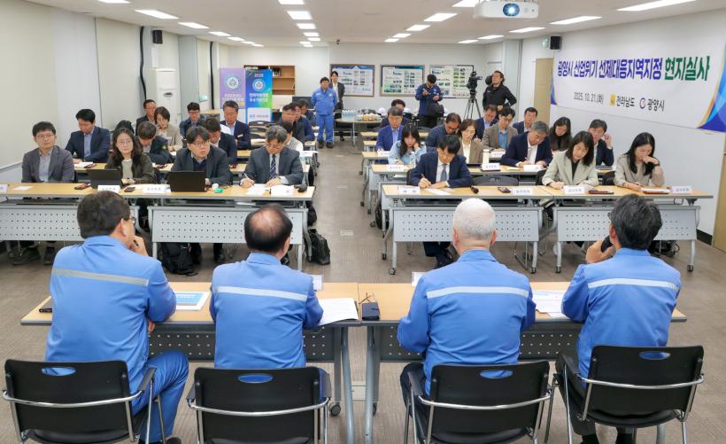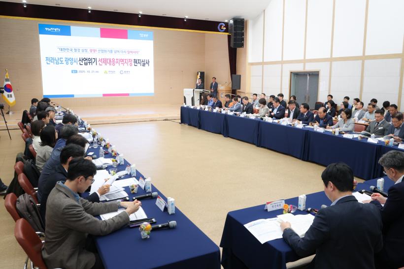 [°ø°£´º½º = Àå¿ÁÁø±âÀÚ] ±¤¾ç½Ã(½ÃÀå Á¤ÀÎÈ)´Â Áö³ 10¿ù 21ÀÏ ¡®»ê¾÷À§±â ¼±Á¦´ëÀÀÁö¿ª ÁöÁ¤¡¯ ÇöÁö ½Ç»ç¸¦ À§ÇØ ½Ã¸¦ ¹æ¹®ÇÑ À§¿øµé¿¡°Ô ö°»ê¾÷ÀÇ ±¸Á¶Àû À§±â »óȲÀ» ¼³¸íÇϰí, Á¤ºÎÀÇ Àû±ØÀûÀÎ Áö¿ø°ú Á¶¼ÓÇÑ ÁöÁ¤À» °·ÂÈ÷ ¿äûÇß´Ù°í ¹àÇû´Ù.