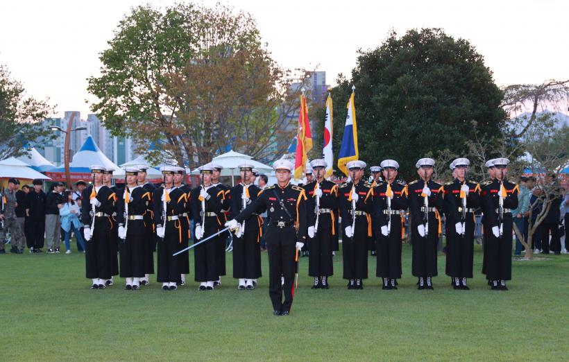 ¿¼±·ç°ø¿ø ÁÖ¹«´ë¿¡¼´Â 4,000¿© ¸íÀÇ °ü¶÷°´ÀÌ ¿îÁýÇß´Ù. ÁÖÁ¦°ø¿¬À¸·Î ÇØ±ºº»ºÎ ÀÇÀå´ëÀÇ ÆÛÆ÷¸Õ½º¿Í LED Á¶¸í ÀÇ»óÀ» Ȱ¿ëÇÑ Ã¢ÀÛ ¹«´ë±Ø ¡®À̼ø½Å, ºÒ¸êÀÇ °áÀÇ¡¯°¡ ¹«´ë¿¡ ¿Ã¶ó °ü°´µé¿¡°Ô Å« ¹Ú¼ö¸¦ ¹Þ¾Ò´Ù.