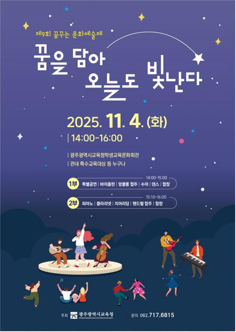 ±¤Áֽñ³À°Ã»(±³À°°¨ ÀÌÁ¤¼±)Àº ¿À´Â 11¿ù 4ÀÏ ¿ÀÈÄ 2½Ã ½Ã±³À°Ã»Çлý±³À°¹®Èȸ°ü¿¡¼ Ư¼ö±³À°´ë»óÇлýÀÌ ÆîÄ¡´Â ¡®Á¦9ȸ ²Þ²Ù´Â ¹®È¿¹¼úÁ¦¡¯¸¦ °³ÃÖÇÑ´Ù.