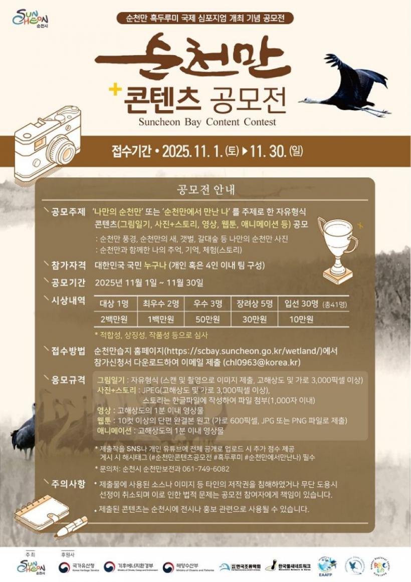 °ø¸ð ÁÖÁ¦´Â ¡®³ª¸¸ÀÇ ¼øÃµ¸¸¡¯ ¶Ç´Â ¡®¼øÃµ¸¸¿¡¼ ¸¸³ ³ª¡¯·Î, ¼øÃµ¸¸ÀÇ Ç³°æ¡¤ÈæµÎ·ç¹Ì¡¤°¹¹ú¡¤°¥´ë¹ç µî Á÷Á¢ ÃÔ¿µÇÑ »çÁø°ú Àϱâü ½ºÅ丮, ¶Ç´Â À¥Å÷¡¤¾Ö´Ï¸ÞÀÌ¼Ç µî ÀÚÀ¯ Çü½ÄÀÇ Ã¢ÀÛ¹°À» Á¦ÃâÇÒ ¼ö ÀÖ´Ù. Àü ±¹¹Î ´©±¸³ª Âü¿©ÇÒ ¼ö ÀÖÀ¸¸ç, ¼øÃµ¸¸°ú ÇÔ²²ÇÑ °³ÀÎÀÇ Ãß¾ï°ú üÇèÀ» ÅëÇØ »ýŵµ½Ã ¼øÃµÀÇ ¸Å·ÂÀ» »õ·Ó°Ô Ç¥ÇöÇÒ ¼ö ÀÖ´Ù.