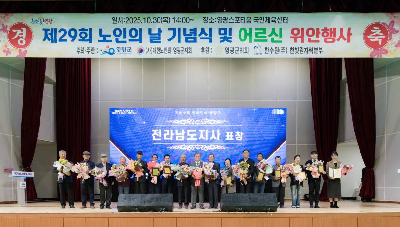 À̳¯ ±â³ä½Ä¿¡¼´Â ³ëÀκ¹Áö Çâ»ó°ú »çȸ¹ßÀüÀ» ±â¿©ÇÑ °ø·Î·Î ¡ãÀü¶ó³²µµÁö»ç ǥ⠡㿵±¤±º¼ö ǥâ ¡ã(»ç)´ëÇѳëÀÎȸ ǥâ µî ÃÑ 29¸íÀÌ ¼ö»óÀÇ ¿µ¿¹¸¦ ¾È¾Ò´Ù. ƯÈ÷ ¿À·£ ±â°£ Áö¿ª»çȸ ºÀ»çȰµ¿¿¡ Çå½ÅÇÑ ¾î¸£½Åµé¿¡°Ô °¨»çÀÇ ¸¶À½À» ÀüÇϸç, ¾î¸£½ÅÀÇ »çȸÀû Á¸°æ°ú ¿ªÇÒÀ» µÇ»õ±â´Â °è±â°¡ µÇ¾ú´Ù.