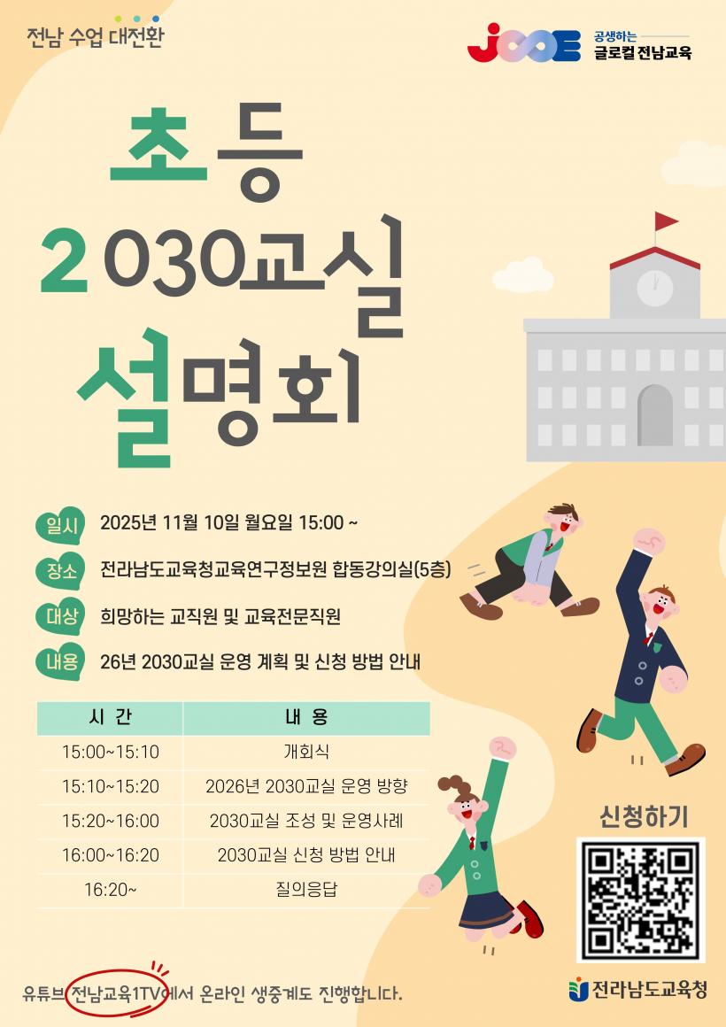 ÀÌ¿Í °ü·ÃÇØ Àü³²±³À°Ã»Àº ¿À´Â 10ÀÏ ¿ÀÈÄ 3½Ã Àü¶ó³²µµ±³À°Ã»±³À°¿¬±¸Á¤º¸¿ø¿¡¼ ¡®Ãʵî 2030±³½Ç ¼³¸íȸ¡¯¸¦ ¿¾î 2026Çг⵵ 2030±³½Ç ¿î¿µ °èȹ°ú ½Åû ¹æ¹ýÀ» ¾È³»ÇÑ´Ù.