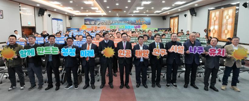 Àü¶ó³²µµ ³ªÁÖ½Ã(½ÃÀå À±º´ÅÂ)´Â À̳¯ ¿ÀÈÄ 2½Ã ½Ãû ´ëȸÀǽǿ¡¼ ¡®ÀΰøÅÂ¾ç ¿¬±¸½Ã¼³ À¯Ä¡ ³ªÁֽùÎÃßÁøÀ§¿øÈ¸¡¯ Ãâ¹ü½ÄÀ» °®°í ³ªÁÖ¸¦ ¹Ì·¡ ûÁ¤¿¡³ÊÁö »ê¾÷ÀÇ Áß½ÉÁö·Î µµ¾à½Ã۱â À§ÇÑ ¹ü½Ã¹Î À¯Ä¡ Ȱµ¿¿¡ ³ª¼¹´Ù.