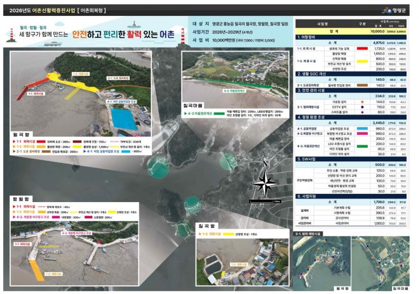 2026³âºÎÅÍ 4³â°£ ±¹ºñ 70¾ï ¿ø, Áö¹æºñ 30¾ï ¿øÀ» Æ÷ÇÔÇÑ ÃÑ »ç¾÷ºñ 100¾ï ¿øÀ» ÅõÀÔÇÏ¿© È«³óÀ¾ ¿ù°î¡¤Ä¥°î¡¤Ç׿ùÇ× ÀÏ´ëÀÇ ³«ÈÄµÈ ¾îÇ׽ü³°ú »ýȰ ±â¹Ý ½Ã¼³À» °³¼±ÇÒ °èȹÀÌ´Ù.