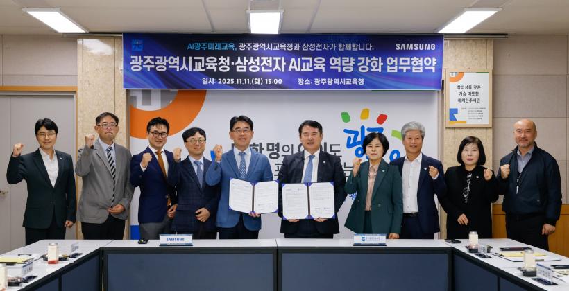 [°ø°£´º½º = ±è¼ö±Ù±âÀÚ] ±¤Áֽñ³À°Ã»(±³À°°¨ ÀÌÁ¤¼±)Àº Áö³ 11ÀÏ º»Ã» »óȲ½Ç¿¡¼ »ï¼ºÀüÀÚ¿Í ÇÔ²² AI±³À°¿ª·® °È¸¦ À§ÇÑ ¾÷¹«Çù¾à(MOU)À» ü°áÇß´Ù.