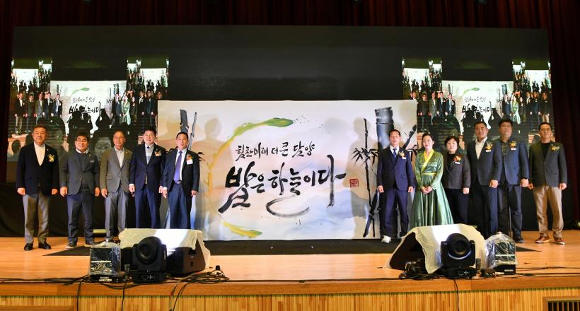 ¶ÇÇÑ, ³ó¾÷ÀÎÀÇ ³¯À» ±â³äÇØ ¡®¹äÀº ÇÏ´ÃÀÌ´Ù¡¯¸¦ ÁÖÁ¦·Î ÇÑ Ä¶¸®±×·¡ÇÇ ÀåÀÎ ±è¼Ò¿µ ÀÛ°¡ÀÇ ÆÛÆ÷¸Õ½º °ø¿¬ÀÌ ÆîÃÄÁ®, ³ó¾÷ÀÇ °¡Ä¡¿Í ¡®ÈûÂù ¹Ì·¡, ´õ Å« ´ã¾ç¡¯À̶ó´Â ¸Þ½ÃÁö¸¦ Àü´ÞÇϸç Å« °¨µ¿À» ¼±»çÇß´Ù.
