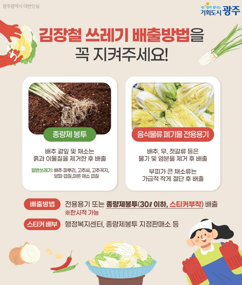 [°ø°£´º½º = ±è¼ö±Ù±âÀÚ] ±¤ÁÖ±¤¿ª½Ã(½ÃÀå °±âÁ¤)´Â º»°ÝÀûÀÎ ±èÀåöÀ» ¸Â¾Æ ¿À´Â 11¿ù17ÀϺÎÅÍ 12¿ù19ÀϱîÁö ¡®±èÀåö À½½Ä¹°¾²·¹±â ÁýÁß °ü¸® ±â°£¡¯À¸·Î ¿î¿µ, ±èÀå¿ë ä¼Ò·ù¿¡ ÇÑÇØ ½ºÆ¼Ä¿ ºÎÂø Á¾·®Á¦ºÀÅõ ¹èÃâÀ» ÇѽÃÀûÀ¸·Î Çã¿ëÇÑ´Ù.