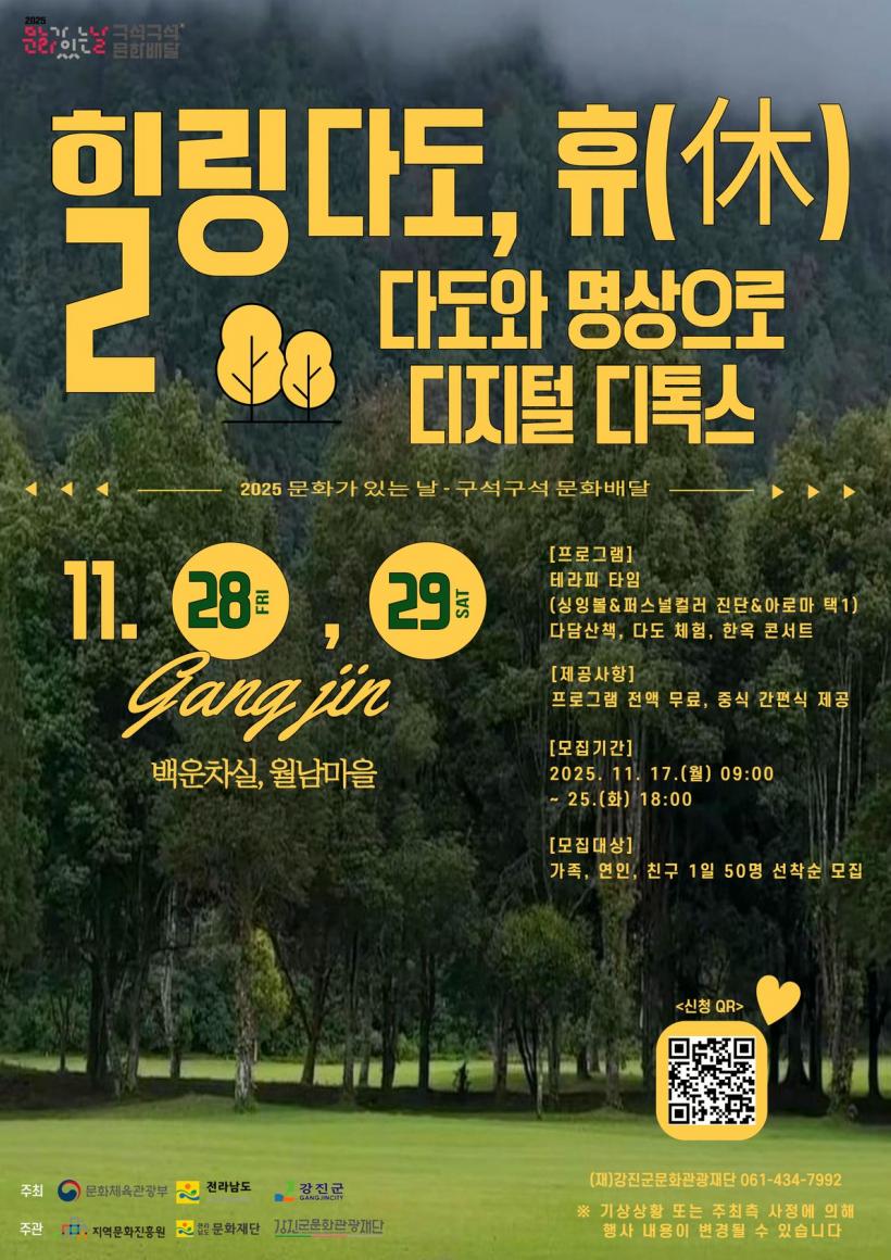 [°ø°£´º½º = ¹Ú¼º¿Á±âÀÚ] °Áø±ºÀÌ ¡®2025 ¹®È°¡ ÀÖ´Â ³¯ – ±¸¼®±¸¼® ¹®È¹è´Þ¡¯ »ç¾÷ÀÇ ÀÏȯÀ¸·Î ¡®Èú¸µ ´Ùµµ, ÈÞ(ýÌ)¡¯ ÇÁ·Î±×·¥À» ¿À´Â 28Àϰú 29ÀÏ ¹é¿îÂ÷½Ç°ú ¿ù³²¸¶À»¿¡¼ µÎ Â÷·Ê ÁøÇàµÈ´Ù.