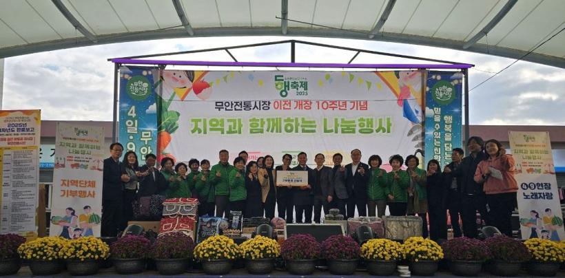 [°ø°£´º½º = ¹Ú¼º¿Á±âÀÚ] Àü³² ¹«¾È±º(±º¼ö ±è»ê)°ú ¹®È°ü±¤Çü Ư¼ºÈ½ÃÀåÀ°¼º»ç¾÷´Ü(´ÜÀå ±èȯȣ)Àº ¹«¾ÈÀüÅë½ÃÀå ÀÌÀü 10ÁÖ³âÀ» ±â³äÇϰí, »óÀΡ¤ÁֹΠ°£ ¼ÒÅë°ú ÈÇÕÀ» °ÈÇϱâ À§ÇØ 19ÀÏ ¿ÀÀü 10½ÃºÎÅÍ ¿ÀÈÄ 5½Ã±îÁö ¹«¾ÈÀüÅë½ÃÀå ÁÖ¹«´ë ÀÏ¿ø¿¡¼ ¡®¹«¾ÈÀüÅë½ÃÀå 10Áֳ⠱â³ä »óÀÎ ¼ÒÅëÀÇ ³¯¡¯ Çà»ç¸¦ °³ÃÖÇß´Ù