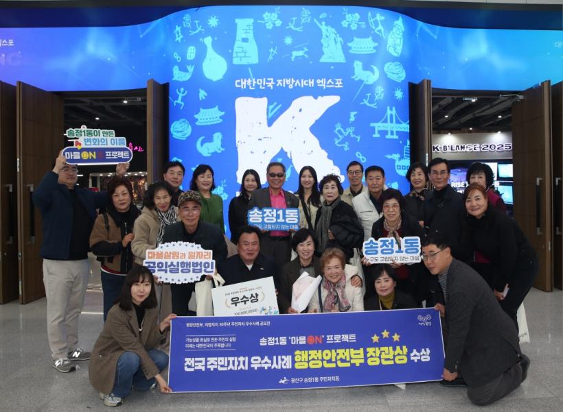 [°ø°£´º½º = ±è´ë¿µ±âÀÚ] ±¤ÁÖ ±¤»ê±¸ ¼ÛÁ¤1µ¿ ÁÖ¹ÎÀÚġȸ(ȸÀå ±â¿µÃ¶)°¡ Áö³ 20ÀÏ ÇàÁ¤¾ÈÀüºÎ°¡ ÁÖ°üÇÑ ¡®Áö¹æÀÚÄ¡ 30Áֳ⠱â³ä ÁÖ¹ÎÀÚÄ¡ ¿ì¼ö»ç·Ê °ø¸ðÀü¡¯¿¡¼ Çà¾ÈºÎÀå°ü»óÀ» ¼ö»óÇØ Ưº°±³ºÎ¼¼ 1¾ï ¿øÀ» È®º¸Çß´Ù.