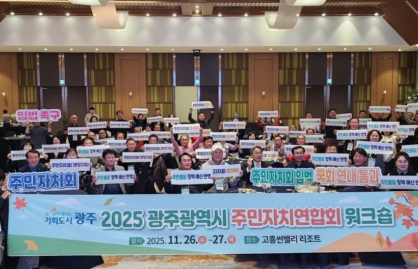±¤ÁÖ±¤¿ª½Ã(½ÃÀå °±âÁ¤)´Â 26~27ÀÏ ÀÌÆ²°£ °íÈï ÀÏ¿ø¿¡¼ 96°³ µ¿ ÁÖ¹ÎÀÚġȸ ȸÀå°ú À§¿ø, ½Ã‧±¸ ´ã´çÀÚ µî 100¿© ¸íÀÌ Âü¼®ÇÑ °¡¿îµ¥ ¡®2025 ÁÖ¹ÎÀÚÄ¡¿¬ÇÕȸ ¿öÅ©¼ó¡¯À» °³ÃÖÇß´Ù.
