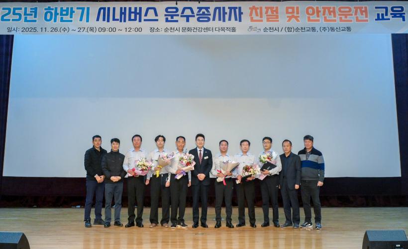 [°ø°£´º½º = ±è¿ëÁø±âÀÚ] ¼øÃµ½Ã(½ÃÀå ³ë°ü±Ô)´Â ´ëÁß±³Åë ÀÌ¿ë ¸¸Á·µµ Çâ»óÀ» À§ÇØ 26Àϰú 27ÀÏ ¾çÀϰ£ ¹®È°Ç°¼¾ÅÍ ´Ù¸ñÀûȦ¿¡¼ °ü³» ½Ã³»¹ö½º ¿î¼öÁ¾»çÀÚ 350¿© ¸íÀ» ´ë»óÀ¸·Î ¡®2025³â ÇϹݱ⠽ó»¹ö½º ¿î¼öÁ¾»çÀÚ Ä£Àý ¹× ¾ÈÀü±³À°¡¯À» ½Ç½ÃÇÑ´Ù°í ¹àÇû´Ù.