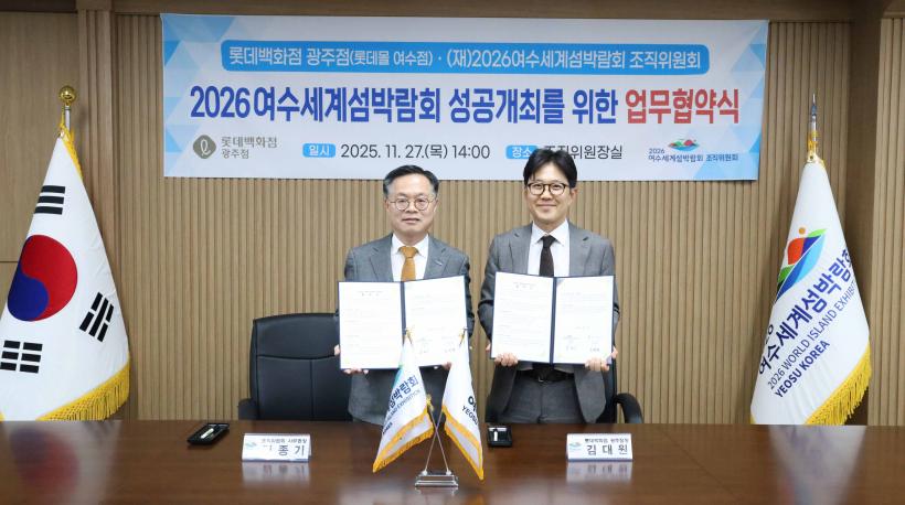 [°ø°£´º½º = ¾ÈÀ翵±âÀÚ] (Àç)2026¿©¼ö¼¼°è¼¶¹Ú¶÷ȸ Á¶Á÷À§¿øÈ¸(ÀÌÇÏ¡®Á¶Á÷À§¡¯)´Â 27ÀÏ ·Ôµ¥¹éÈÁ¡ ±¤ÁÖÁ¡(ÀÌÇÏ¡®·Ôµ¥¹éÈÁ¡¡¯)°ú ¼¶¹Ú¶÷ȸ È«º¸ Çù·ÂÀ» À§ÇØ ¾÷¹«Çù¾àÀ» ü°áÇß´Ù.