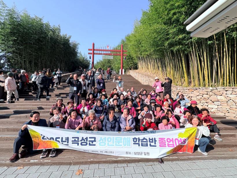 [°ø°£´º½º = ¾ÈÀ翵±âÀÚ] °î¼º±º¹Ì·¡±³À°Àç´Ü(ÀÌ»çÀå Á¶»ó·¡)Àº ¼ºÀι®Çر³À° Ãʵî 3³â °úÁ¤ÀÇ Á¹¾÷À» ±â³äÇϱâ À§ÇØ 5°³ ÇнÀ¹Ý ÇнÀÀÚµéÀÌ Áö³ 11¿ù 26ÀÏ(¼ö) ´ã¾ç±º ÀÏ¿øÀ¸·Î Á¹¾÷¿©ÇàÀ» ´Ù³à¿Ô´Ù°í ¹àÇû´Ù.