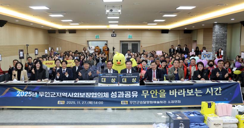 [°ø°£´º½º = ¹Ú¼º¿Á±âÀÚ] ¹«¾È±º Áö¿ª»çȸº¸ÀåÇùÀÇü(°ø°øÀ§¿øÀå ±è»ê)Àº Áö³ 27ÀÏ ½Â´Þ¹®È¿¹¼úȸ°ü ¼Ò°´ç¿¡¼ ½Ç¹«ºÐ°ú À§¿ø°ú À¾¸é ÇùÀÇü À§¿ø, Áö¿ªÁֹΠµî 150¿© ¸íÀÌ Âü¼®ÇÑ °¡¿îµ¥ ¡®2025 ¹«¹Ù½Ã(¹«¾ÈÀ» ¹Ù¶óº¸´Â ½Ã°£)¡¯ ¼º°ú ¹ßÇ¥´ëȸ¸¦ °³ÃÖÇß´Ù.