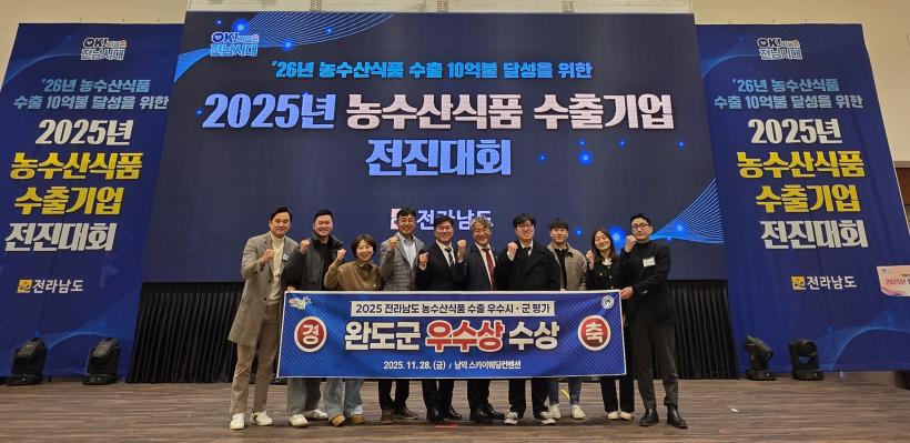 [°ø°£´º½º = Çѵ¿¼ø±âÀÚ] ¿Ïµµ±ºÀº Áö³ 11¿ù 28ÀÏ Àü³² ¹«¾È±º¿¡¼ ¿¸° ¡®2025³â Àü³² ³ó¼ö»ê½Äǰ ¼öÃâ ¿ì¼ö ½Ã±º Æò°¡¡¯¿¡¼ 22°³ ½Ã±º Áß ¿ì¼ö»óÀ» ¼ö»óÇß´Ù.