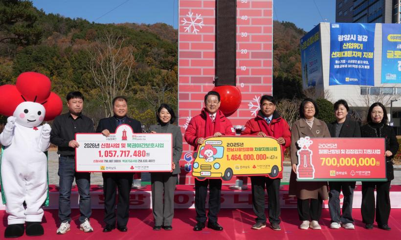 [°ø°£´º½º = ±è¼ö±Ù±âÀÚ] Àü¶ó³²µµ¿Í Àü³²»çȸº¹Áö°øµ¿¸ð±Ýȸ´Â 1ÀÏ Àü³²OKµµ¹Î±¤Àå¿¡¼ ¡®Èñ¸Á 2026 ³ª´®Ä·ÆäÀΡ¯ÀÇ ½ÃÀÛÀ» ¾Ë¸®´Â »ç¶ûÀÇ ¿ÂµµÅ¾ Á¦¸·½ÄÀ» °³ÃÖÇß´Ù. ¸ð±Ý ¸ñÇ¥¾×Àº Áö³ÇØ¿Í µ¿ÀÏÇÑ 114¾ï ¿øÀÌ´Ù.