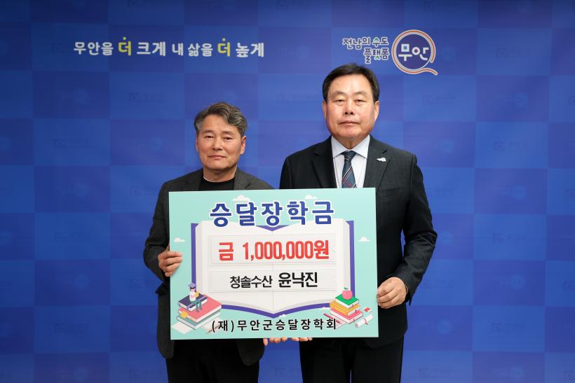 [°ø°£´º½º = ¹Ú¼º¿Á±âÀÚ] Àü³² ¹«¾È±º(±º¼ö ±è»ê)Àº Áö³ 1ÀÏ Áö¿ªÀÎÀç À°¼ºÀ» À§ÇØ ¢ß½ÅÈï»ê¾÷ÀÌ ÀåÇÐ±Ý 1õ¸¸ ¿øÀ», û¼Ö¼ö»ê À±³«Áø ´ëÇ¥°¡ ÀåÇÐ±Ý 1¹é¸¸ ¿øÀ» °¢°¢ (Àç)¹«¾È±º½Â´ÞÀåÇÐȸ¿¡ ±âŹÇß´Ù°í ¹àÇû´Ù.