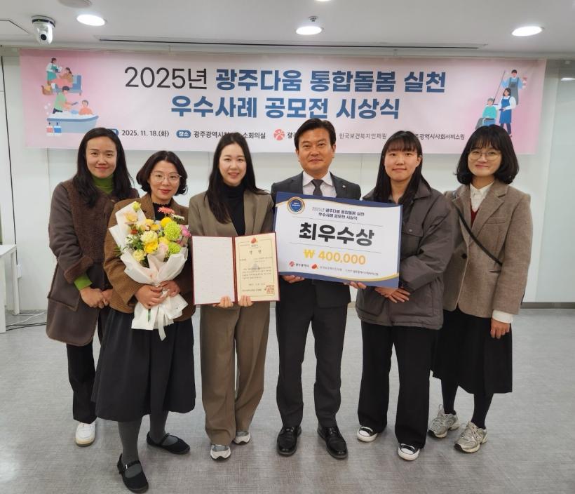 [°ø°£´º½º = ±è´ë¿µ±âÀÚ] ±¤ÁÖ±¤¿ª½Ã ³²±¸(±¸Ã»Àå ±èº´³»)´Â ºÀ¼±2µ¿ ÇàÁ¤º¹Áö¼¾ÅÍ Áö¿¬¿ì ÁÖ¹«°üÀÌ ¡®2025 ±¤ÁÖ´Ù¿ò ÅëÇÕµ¹º½ ¿ì¼ö»ç·Ê °ø¸ðÀü¡¯¿¡¼ ³²±¸Ã» ¼Ò¼ÓÀ¸·Î´Â À¯ÀÏÇÏ°Ô ¼ö»óÇß´Ù°í Áö³ 11¿ù 18ÀÏ ¹àÇû´Ù.