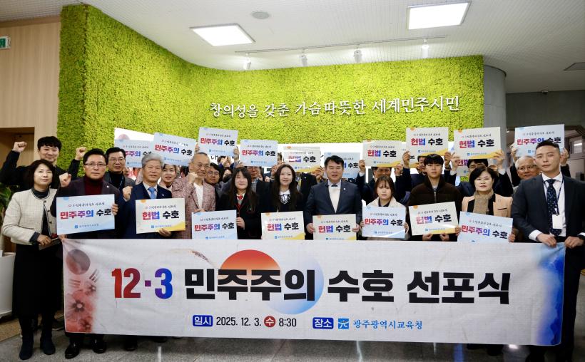 [°ø°£´º½º = ±è¼ö±Ù±âÀÚ] ±¤Áֽñ³À°Ã»(±³À°°¨ ÀÌÁ¤¼±)Àº 3ÀÏ º»Ã» ºÏÄ«Æä¿¡¼ ±³Á÷¿ø, ÇлýÀÇȸ ¼Ò¼Ó ÇлýµéÀÌ Âü¿©ÇÑ °¡¿îµ¥ ¡®12¡¤3 ¹ÎÁÖÁÖÀÇ ¼öÈ£ ¼±Æ÷½Ä¡¯À» °³ÃÖÇß´Ù.