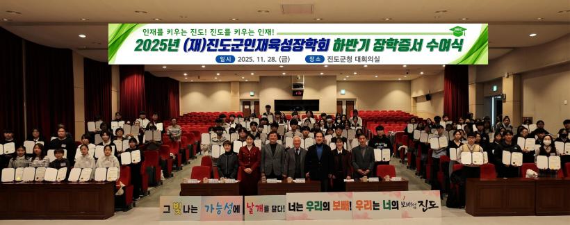 [°ø°£´º½º = Àå¿ÁÁø±âÀÚ] (Àç)Áøµµ±ºÀÎÀçÀ°¼ºÀåÇÐȸ(ÀÌ»çÀå ±èÈñ¼ö)°¡ Áö³ 11¿ù 28ÀÏ(±Ý)¿¡ ¡®2025³â ÇϹݱâ ÀåÇÐÁõ¼ ¼ö¿©½Ä¡¯À» ¿°í, Áö¿ª ÇлýµéÀ» À§ÇÑ ÀåÇбÝÀ» Àü´ÞÇß´Ù.