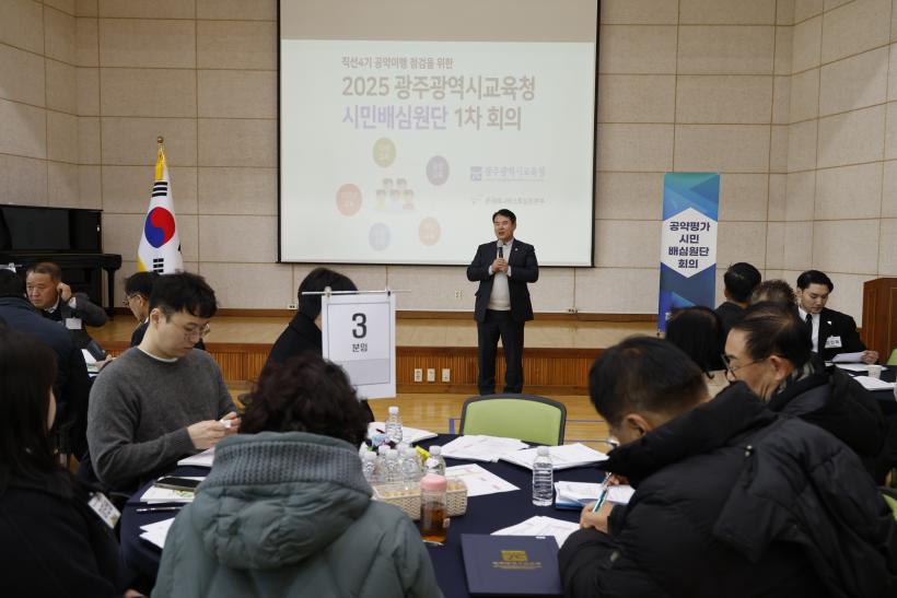 [°ø°£´º½º = ±è¼ö±Ù±âÀÚ] ±¤Áֽñ³À°Ã»(±³À°°¨ ÀÌÁ¤¼±)Àº Áö³ 3ÀÏ ±¤Áֽñ³À°Ã»±³À°¿¬¼ö¿ø º¸¶÷°ü¿¡¼ °ø¾àÆò°¡½Ã¹Î¹è½É¿ø´Ü 50¸íÀ» À§ÃËÇϰí 1Â÷ ȸÀǸ¦ ÁøÇàÇß´Ù.