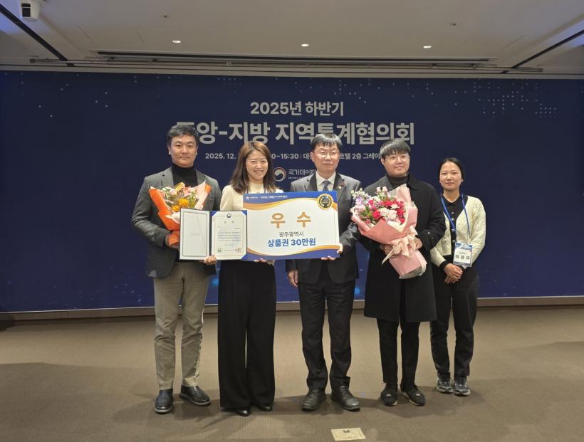 [°ø°£´º½º = ±è¼ö±Ù±âÀÚ] ±¤ÁÖ±¤¿ª½Ã(½ÃÀå °±âÁ¤)´Â Áö³ 3ÀÏ ´ëÀü ÀÎÅÍ½ÃÆ¼È£ÅÚ¿¡¼ ¿¸° ±¹°¡µ¥ÀÌÅÍó ÁÖ°ü ¡®2025³â Áö¿ªÅë°è ¿ì¼ö»ç·Ê °ø¸ðÀü¡¯¿¡¼ Àü±¹ ¿ì¼ö±â°üÀ¸·Î ¼±Á¤, ±¹°¡µ¥ÀÌÅÍóÀå»óÀ» ¼ö»óÇß´Ù.