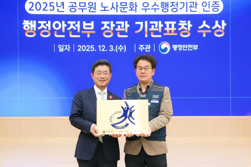 [°ø°£´º½º = Àå¿ÁÁø±âÀÚ] ±¤¾ç½Ã°¡ ÇàÁ¤¾ÈÀüºÎ°¡ ÁÖ°üÇÑ ¡®2025³â °ø¹«¿ø ³ë»ç¹®È ¿ì¼öÇàÁ¤±â°ü ÀÎÁõÁ¦¡¯ ½É»ç¿¡¼ ¿ì¼öÇàÁ¤±â°üÀ¸·Î ¼±Á¤µÅ ÇàÁ¤¾ÈÀüºÎÀå°ü ǥâÀ» ¼ö»óÇß´Ù.