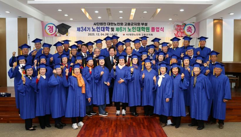 [°ø°£´º½º = ±è¿ëÁø±âÀÚ] °íÈﱺ(±º¼ö °ø¿µ¹Î)Àº 4ÀÏ °íÈï Çϳª¿þµùȦ¿¡¼ ´ëÇѳëÀÎȸ °íÈﱺÁöȸ ºÎ¼³ Á¦34±â ³ëÀδëÇÐ ¹× Á¦6±â ³ëÀδëÇпø Á¹¾÷½ÄÀ» °³ÃÖÇϰí, Æò»ý ¹è¿òÀ» ½ÇÃµÇØ ¿Â ¾î¸£½ÅµéÀÇ ÇÑ ÇØ µ¿¾ÈÀÇ ³ë·Â°ú ¿Á¤À» ÃàÇÏÇÏ´Â ÀÚ¸®¸¦ °¡Á³´Ù.